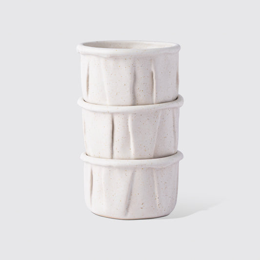 Our products are handcrafted by our team in our studio in South Wales and made from 100% stoneware clay. Each piece is twice fired and coated in our food-safe Paper White glaze making them both dishwasher and microwave safe.